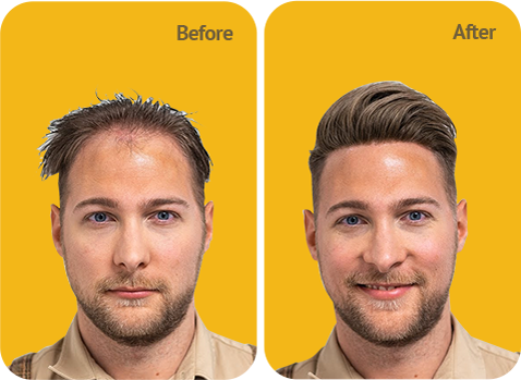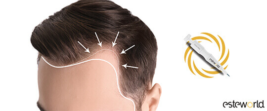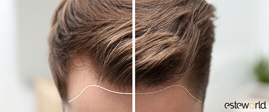 Especially for men with hair growing up to 4 cm in back of the scalp, two strips, measuring approximately 1 to 2 cm in thickness, are shaved, while the shaved area is hidden with long hairs; it is possible to get hair that appear very normal, can be concealed with no need to shaving in 2 to 3 days.